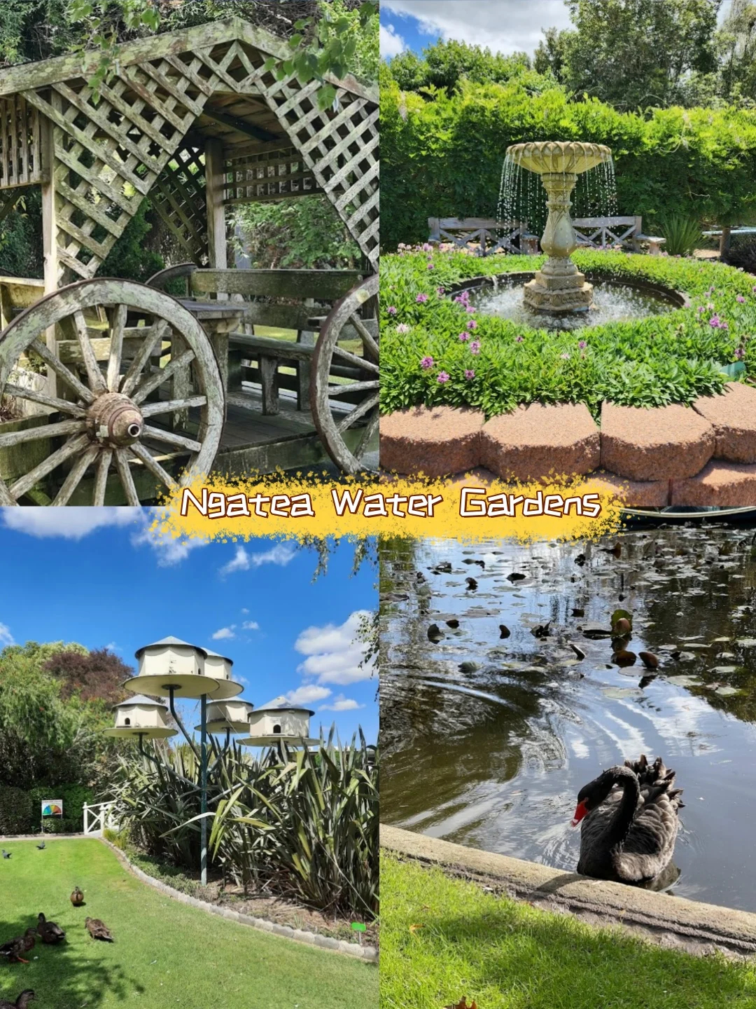 6. **Ngatea Water Gardens**:车程1小时,门票成人14新西兰元,儿童6元(5岁以下免费)。这个大庄园内有小瀑布、水车和喷泉,非常适合家庭游玩,售票处还有饲料出售,可以喂养小动物。
