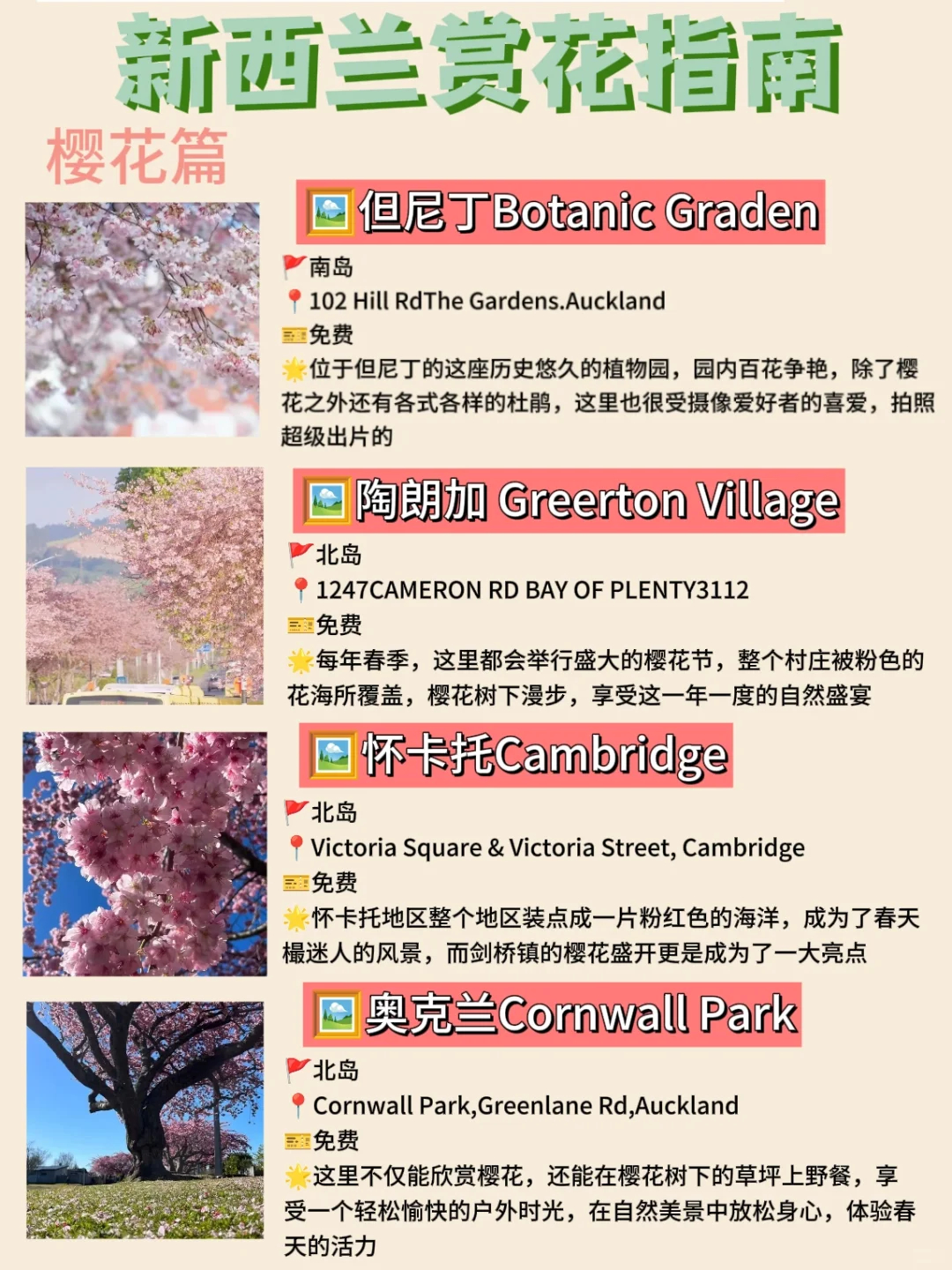 新西兰即将迎来春季,万物复苏,鲜花争相绽放,感受这美丽的花季。