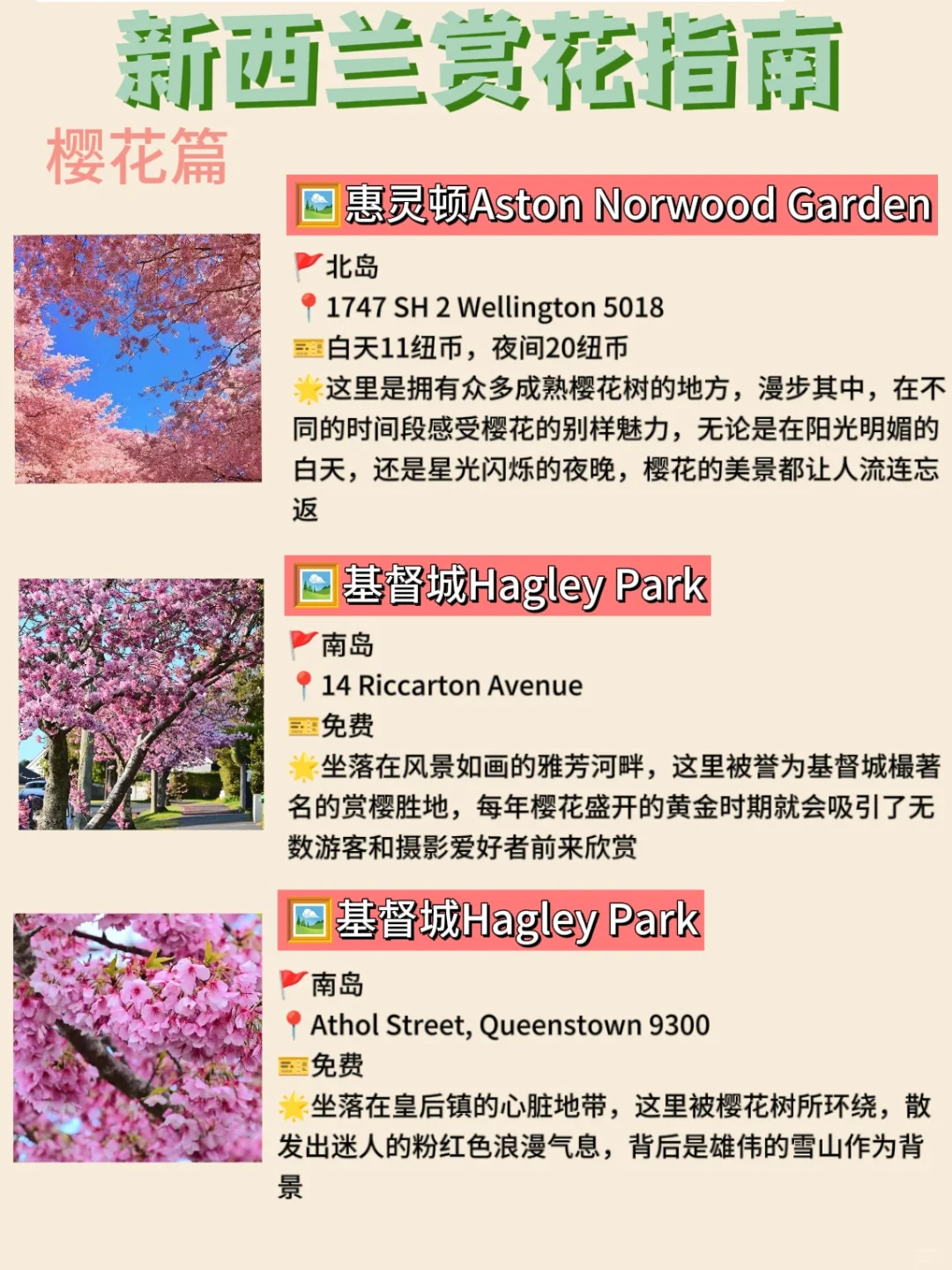 樱花的盛开期通常在9月至10月,值得一去的地点有: