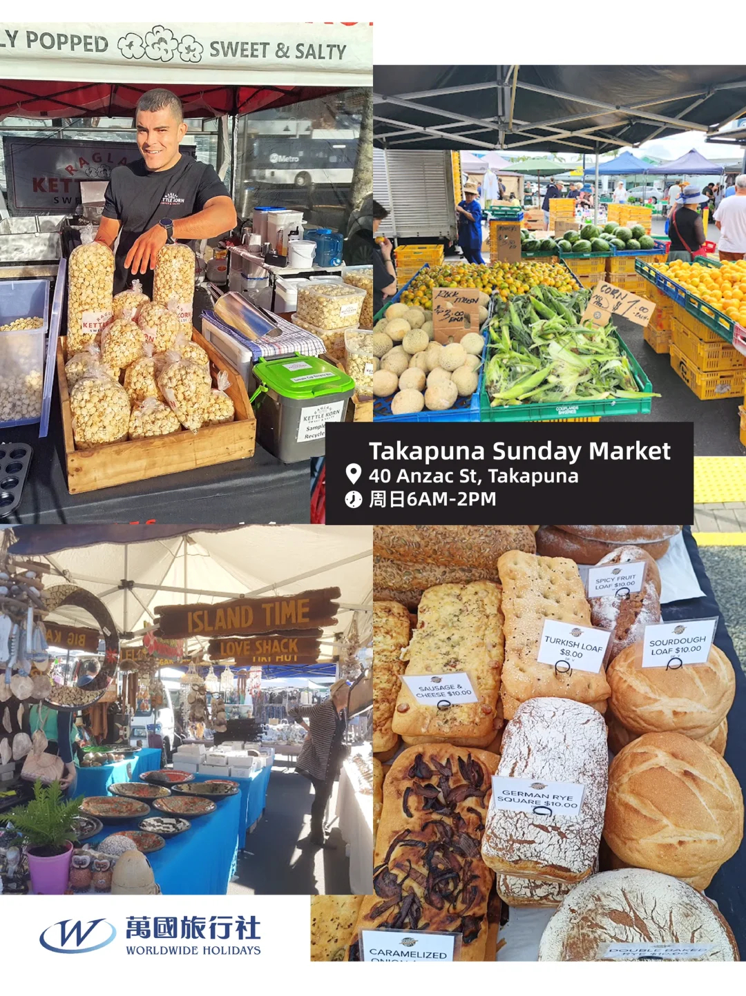 Takapuna Sunday Market,专为早起的爱好者设计的新鲜市集,提供当地有机农产品和美味佳肴,令每个周末充满期待。