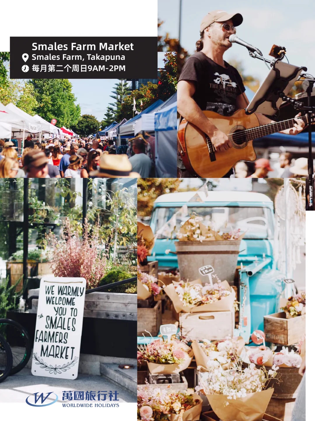 Smales Farm Market,北岸最大的周日市集,每月都吸引众多游客,提供新鲜有机的食材和精美的手工艺品。