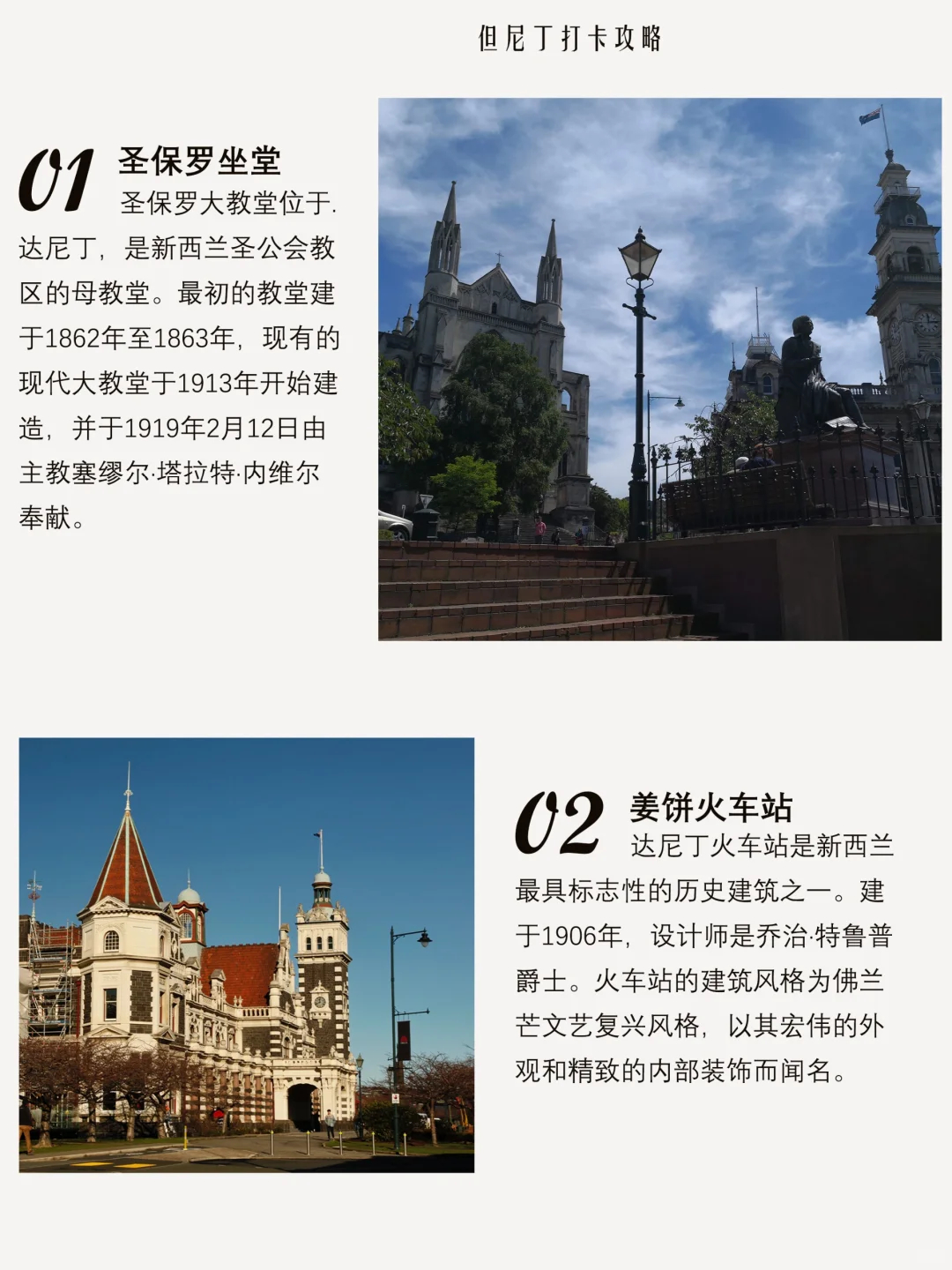 达尼丁在保留历史的同时,也散发出活力与魅力。从圣保罗大教堂到隧道沙滩,每个地方都讲述着这个城市的独特故事,无论你是文化爱好者,历史爱好者,还是自然探险者,达尼丁都能满足你的旅行期望。亲身体验这个充满惊喜的城市吧!