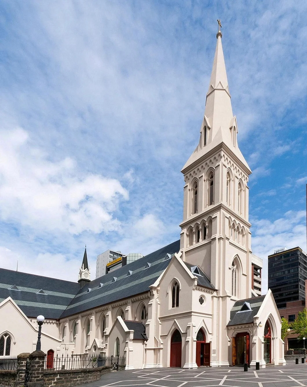 本期我们来欣赏位于奥克兰中央商务区Federal St与Wyndham St交汇处的天主教大教堂——圣帕特里克教堂。此教堂在罗马天主教体系中,作为每个教区的中心,扮演着主教的办公室和宗教活动的核心角色。在新西兰,有六个主要教区,而圣帕特里克教堂负责的区域涵盖了奥克兰、北地及科罗曼德尔,因此显得尤为重要。 这座大教堂通常被称为圣帕特里克教堂,实际上全名为圣帕特里克与圣约瑟夫大教堂。其中,圣帕特里克是爱尔兰的保护圣人,由于早期移民中的许多天主教徒来自爱尔兰而被崇敬;而圣约瑟夫则是耶稣的养父,象征着谦逊、保护及家庭的责任。 教堂的历史可以追溯到1843年,当时只有一座小木教堂。1848年,教堂被更换为石造;到了1884年进行了扩建。1907年进行了重大重建,原有的石教堂大部分被拆除,建成了现在更为宏伟和现代的建筑,形成了如今的样貌。 目前的圣帕特里克教堂主要采用哥特复兴式建筑风格,其设计受到了中世纪哥特式建筑的启发,展现了尖拱、尖顶、精美雕刻和色彩斑斓的玻璃窗。每次路过这座教堂,我都不禁赞叹它的美丽。