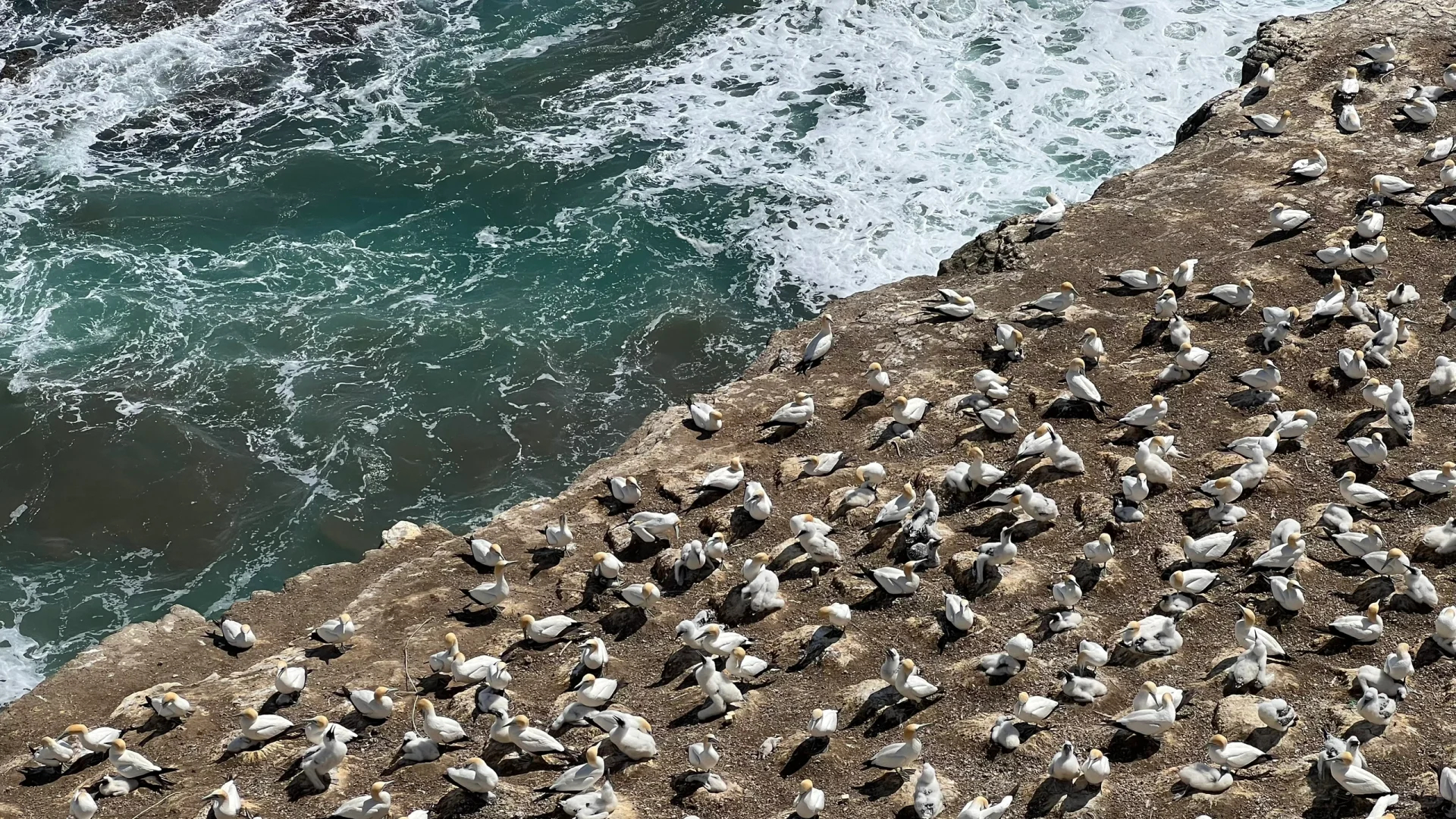 鸟岛步道设有两个观景台,游客可以选择分叉口向上或向下走。上方的观景台较小且较高,提供鸟岛侧面的壮观景色,而下方的观景台则面积较大,可以更加接近塘鹅。适合按照步道路径顺序游览,风景令人叹为观止。