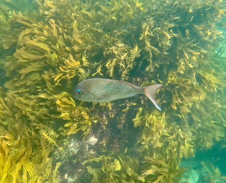 透明皮划艇的底部设计允许我们清晰地看到水下生物。我们在水中遇到一条巨大的snapper,因生态保护而对人类不怕,围绕在我们船周围游动。此外,我们还看到了许多其他鱼类,强烈建议携带防水拍摄设备和无人机,以记录下精彩瞬间。