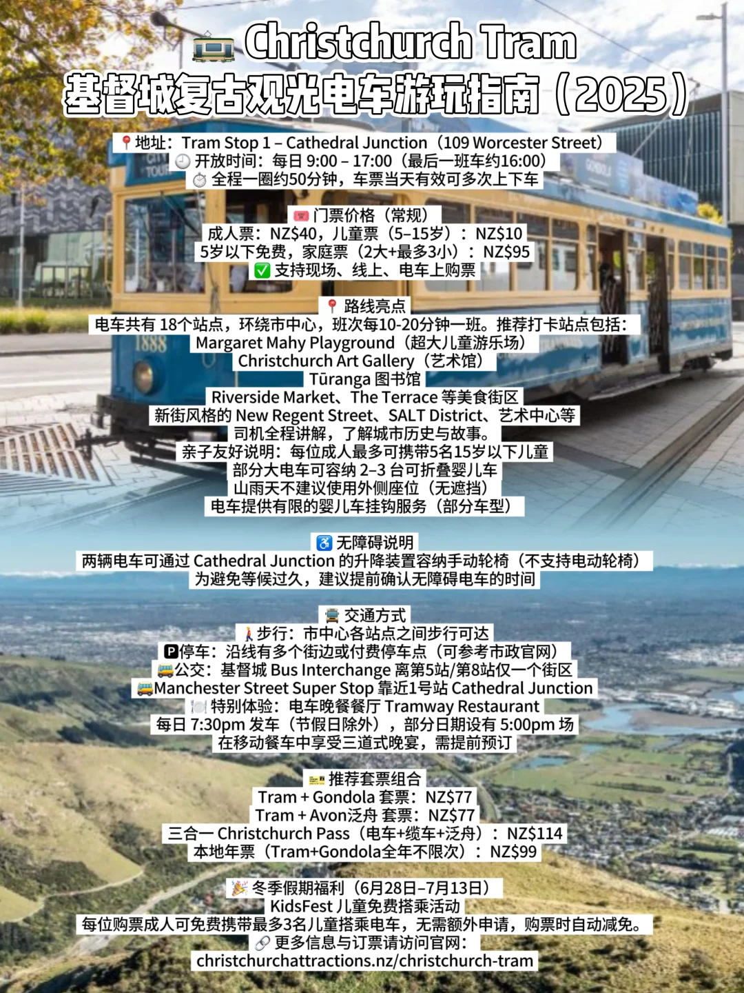 🚋 电车儿童免费|Christchurch Tram(9:00–17:00)