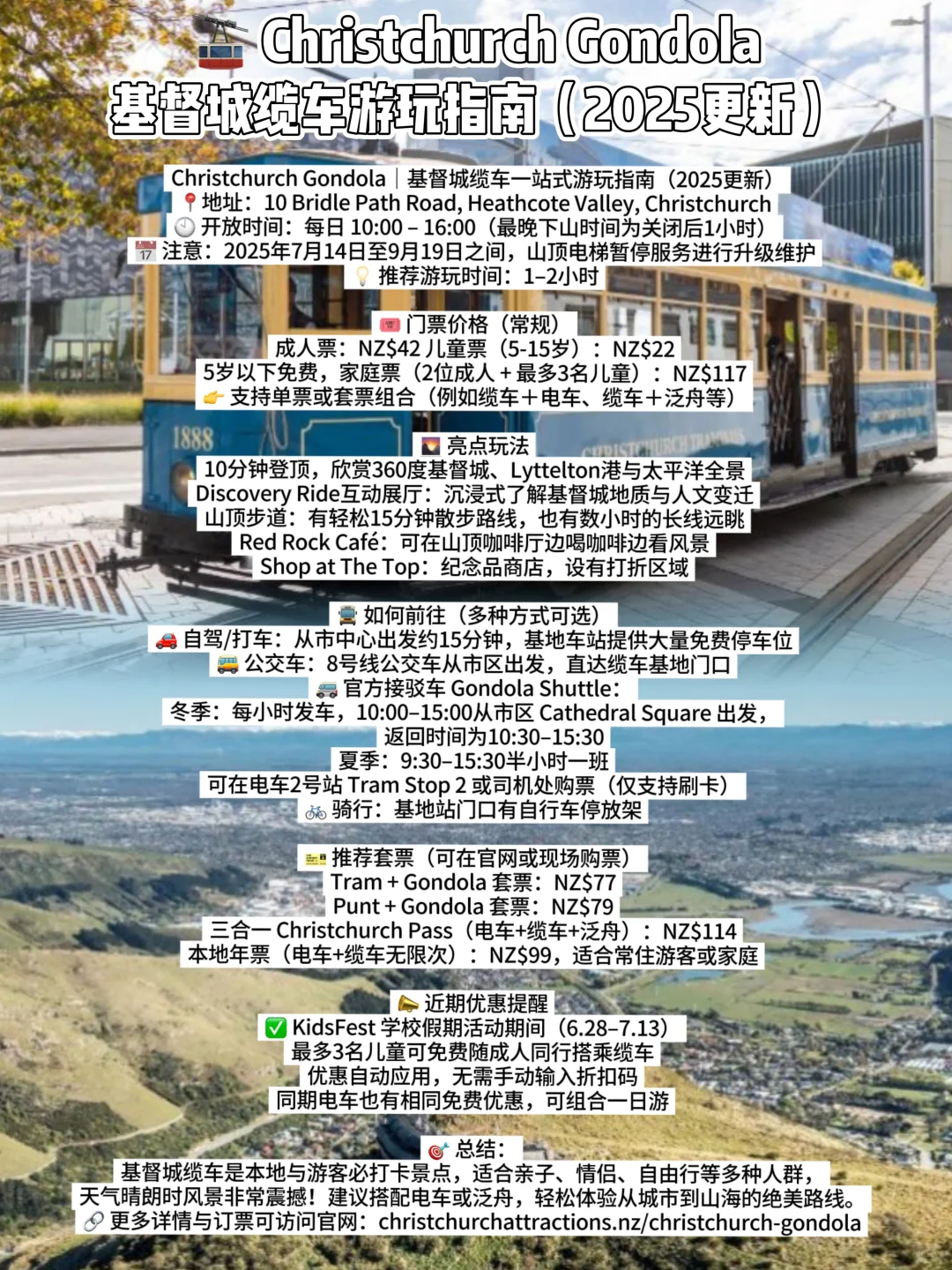 🚠 缆车儿童免费|Christchurch Gondola(10:00–16:00)